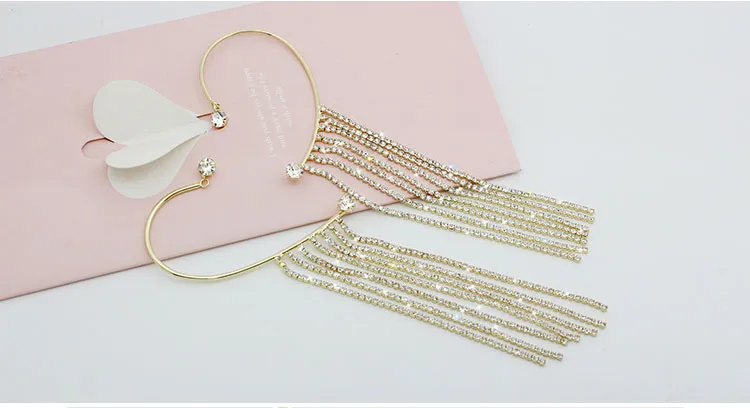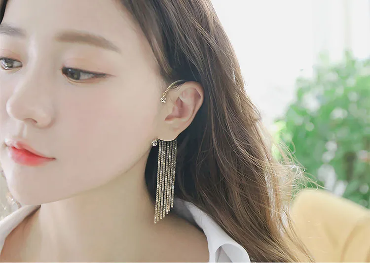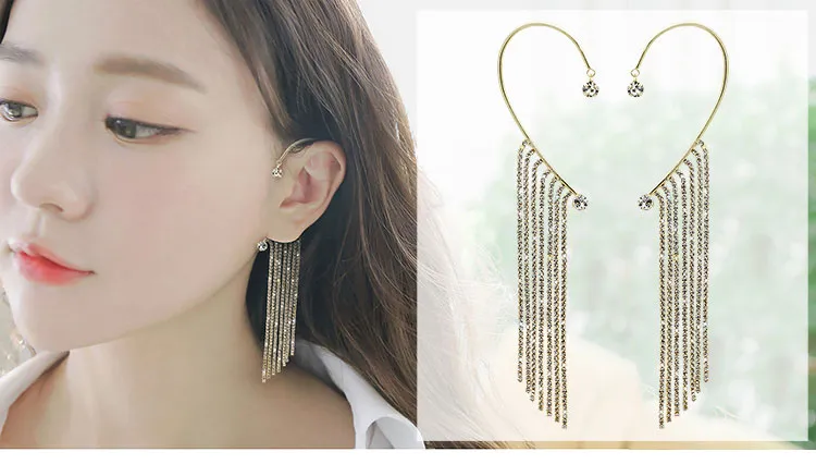 Crafted with high-quality materials and designed to catch the light in all the right ways, this accessory offers the perfect balance of elegance and playfulness. Whether you're dressing for a night out, a party, or simply looking to add a touch of glam to your everyday style, the Long Chain Tassel Ear Hook Ear Clip is the perfect addition to your jewelry collection.
