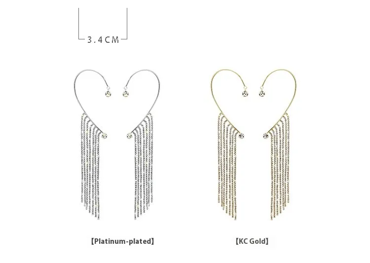 These earrings are versatile enough to be paired with a variety of outfits. Whether you're wearing a casual tee and jeans or an elegant evening dress, the Long Chain Tassel Ear Hook Ear Clip complements a range of styles. Its bold design makes it a perfect accessory for those who love to experiment with their fashion and want an earring that stands out.