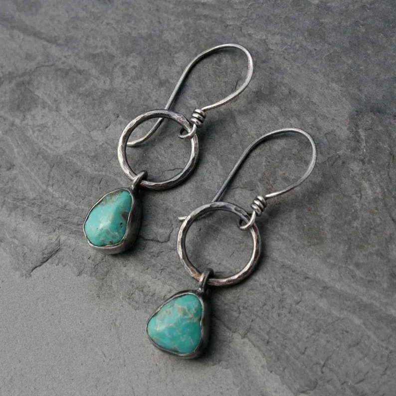 Long Minimalist Retro Turquoise Exaggerating Unique Eardrops