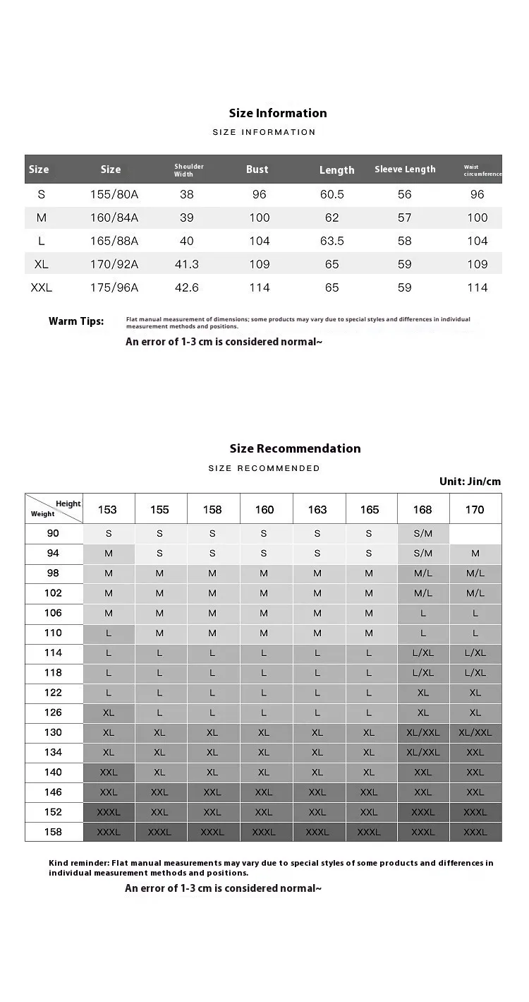 allow 2-3cm differences due to manual measurement. 2. Please check the size chart carefully before you buy the item, if you don't know how
