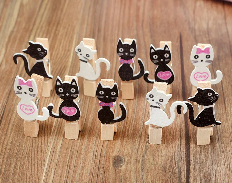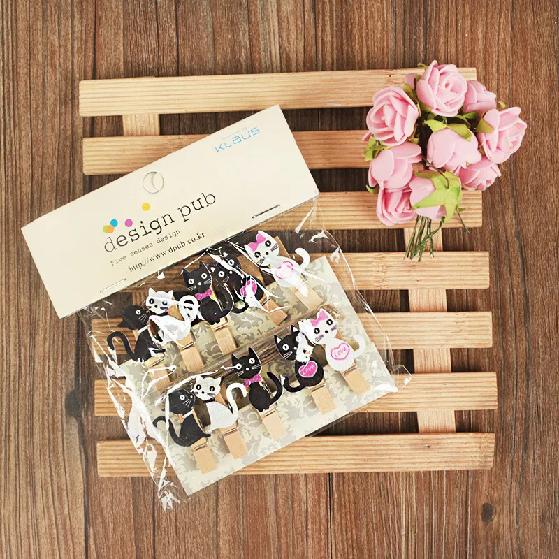 Long tail cat decoration wooden clip photo clip classroom