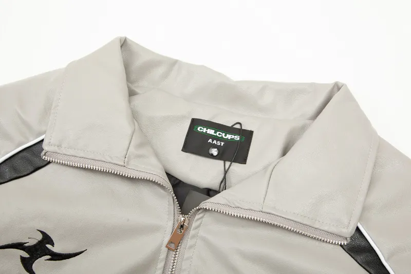 Loose American Couple Embroidered Motorcycle PU Jacket