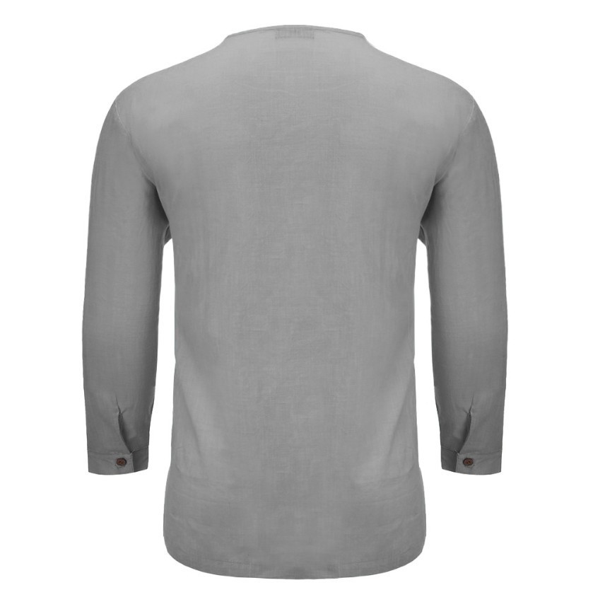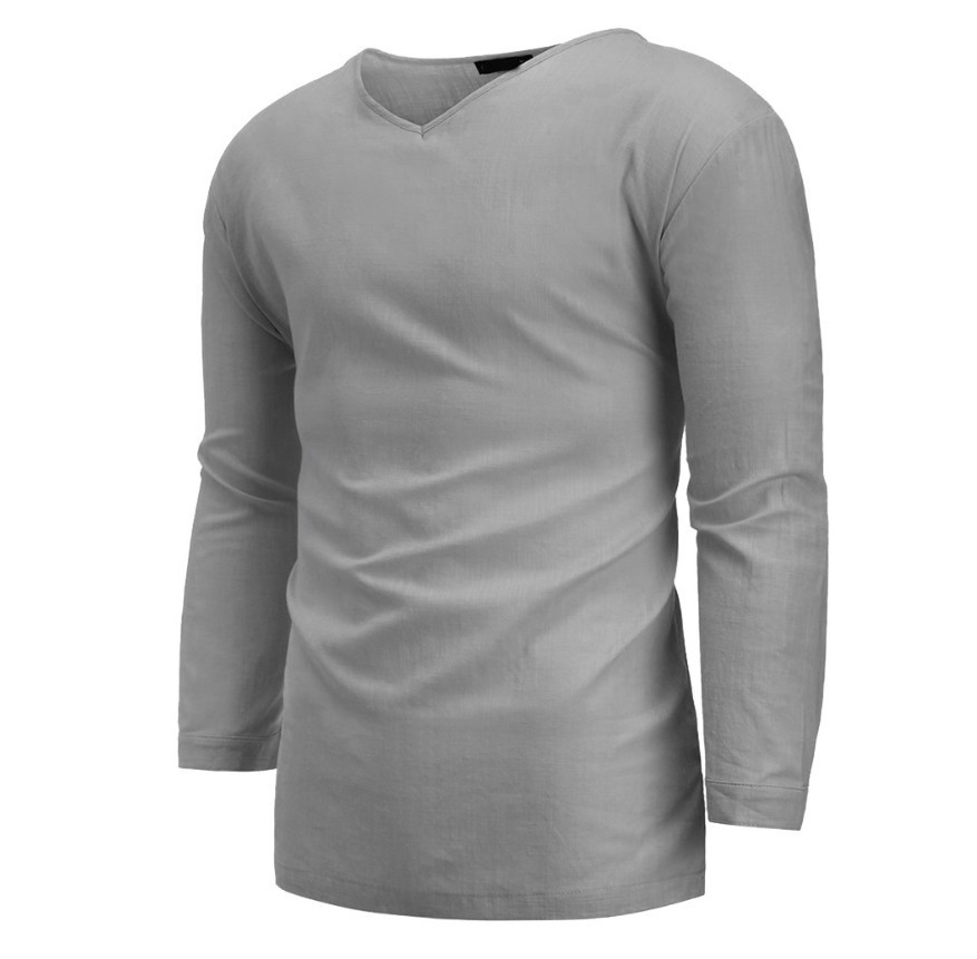 Meta Tag Description: Discover the perfect blend of comfort and style with our Loose Casual V-neck Top Cotton And Linen Long Sleeve Pullover Shirt for men. Ideal for casual wear.