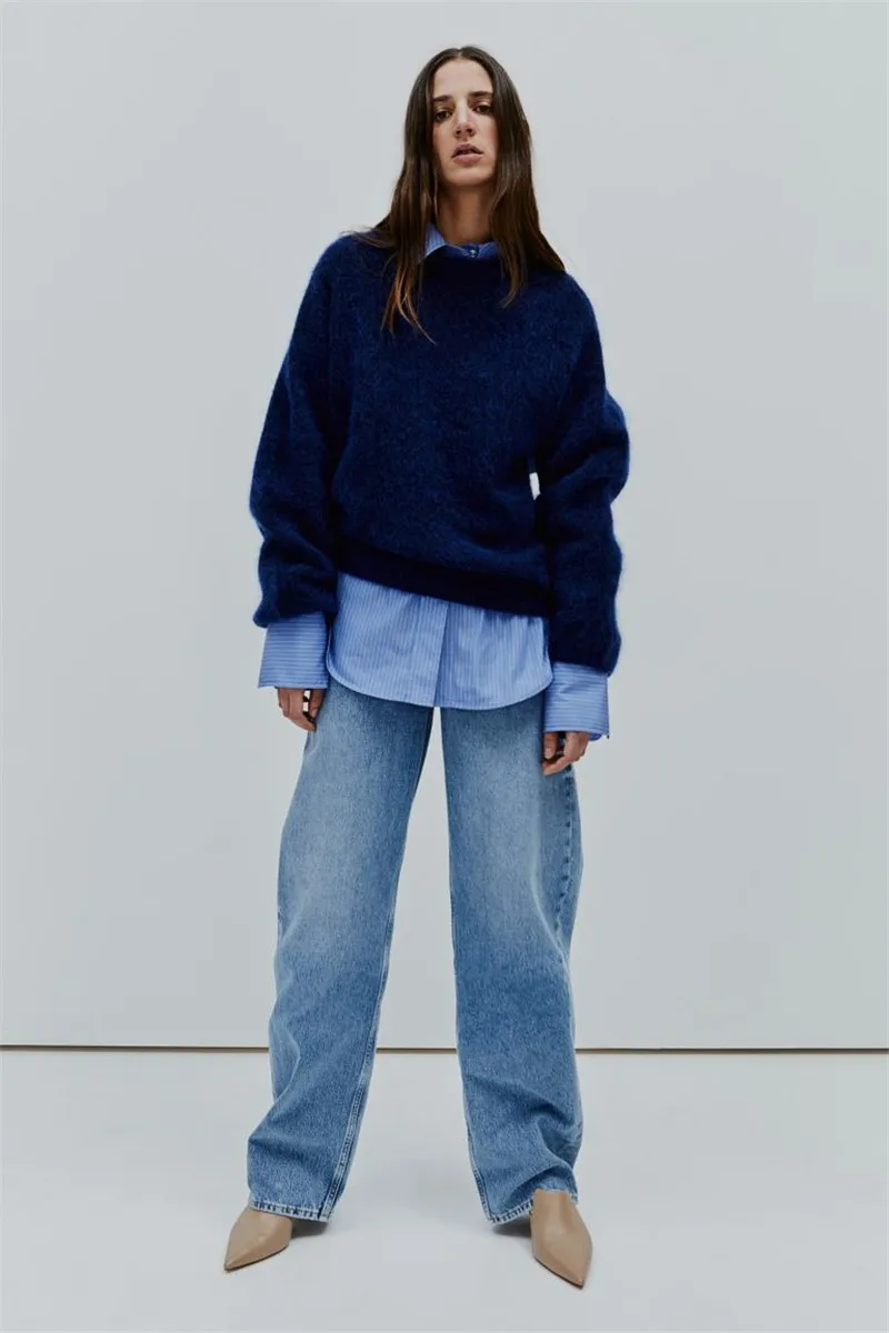Loose Round Neck Pullover Sweater Fashion Long Sleeve Long Top For Women Clothing