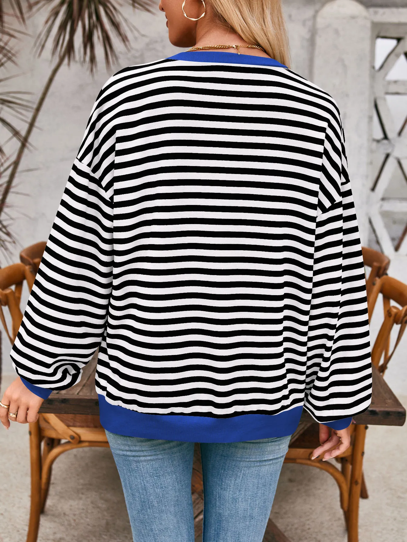 Loose Striped Long Sleeve T-shirt Casual Pullover Sweater For Womens Clothing