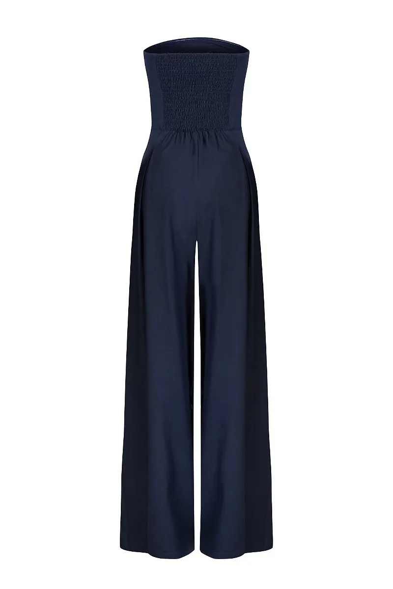 Loose Tube-Top Jumpsuit for Women - Stylish Backless Wide Leg Overalls