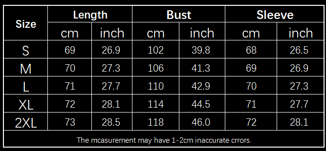 allow 2-3cm differences due to manual measurement.