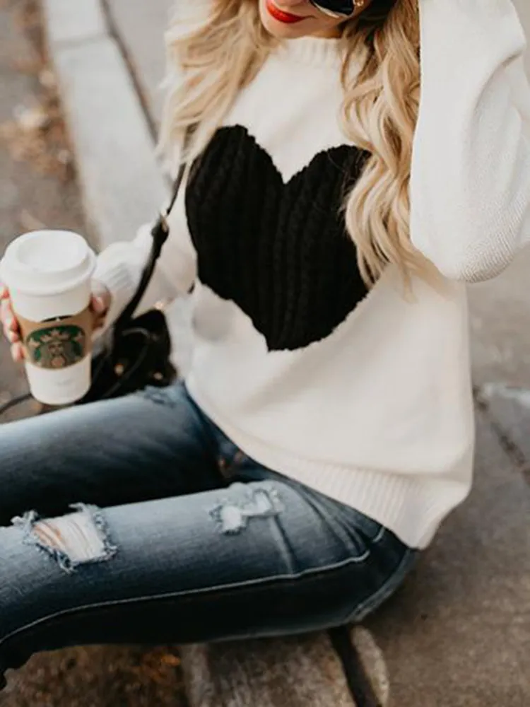 Love Printed Pullover Sweater For Women Solid Color Spring And Autumn Clothes Valentines Day