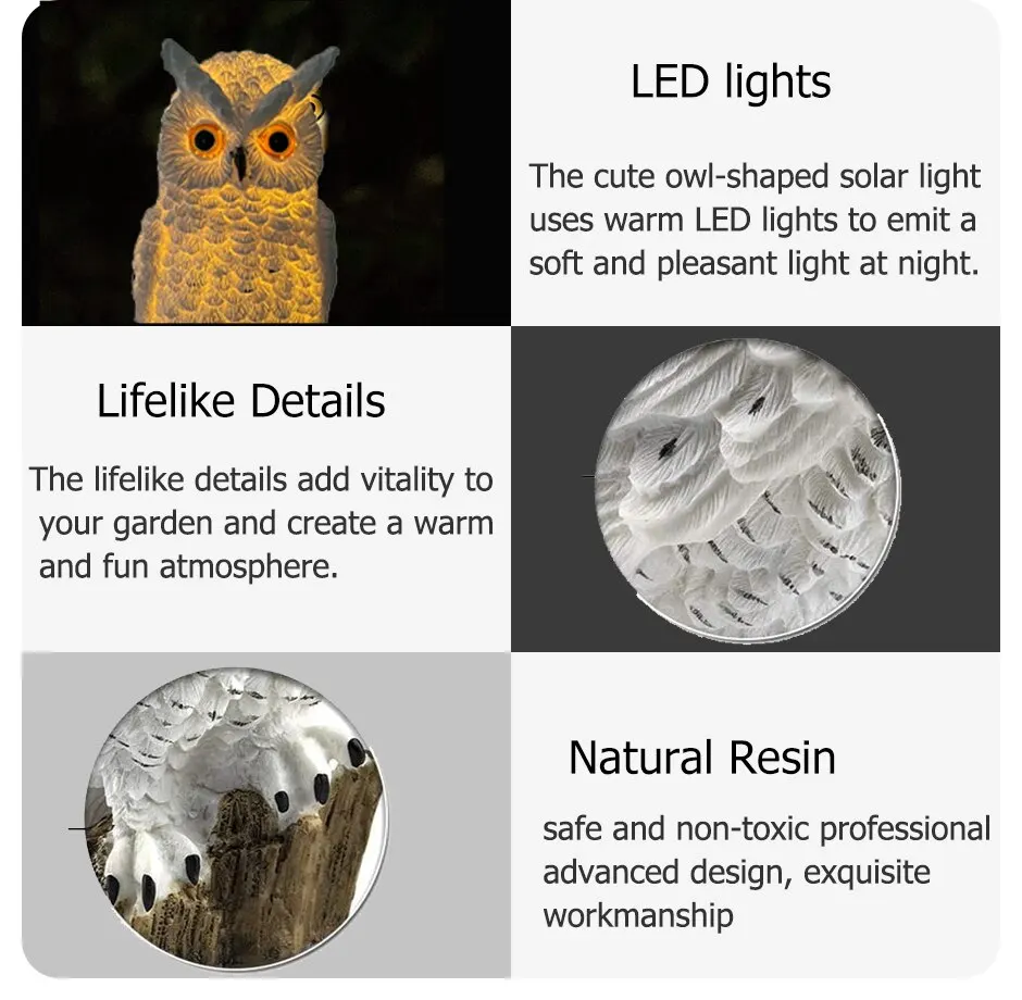 - Material Excellence: Crafted from high-quality resin and plastic, our Luminary Owl not only showcases lifelike details but also ensures durability with its IP55 waterproof rating, making it suitable for most weather conditions.