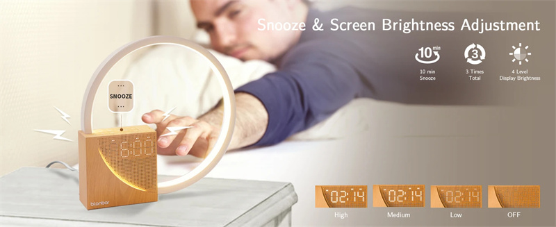 Wake-Up Alarm Clock: The wake-up light turns on 10 minutes before the set alarm time. You can also press the Snooze button, and get an extra 10 minutes of sleep. Up to 3 times snooze which brings convenience to your life.