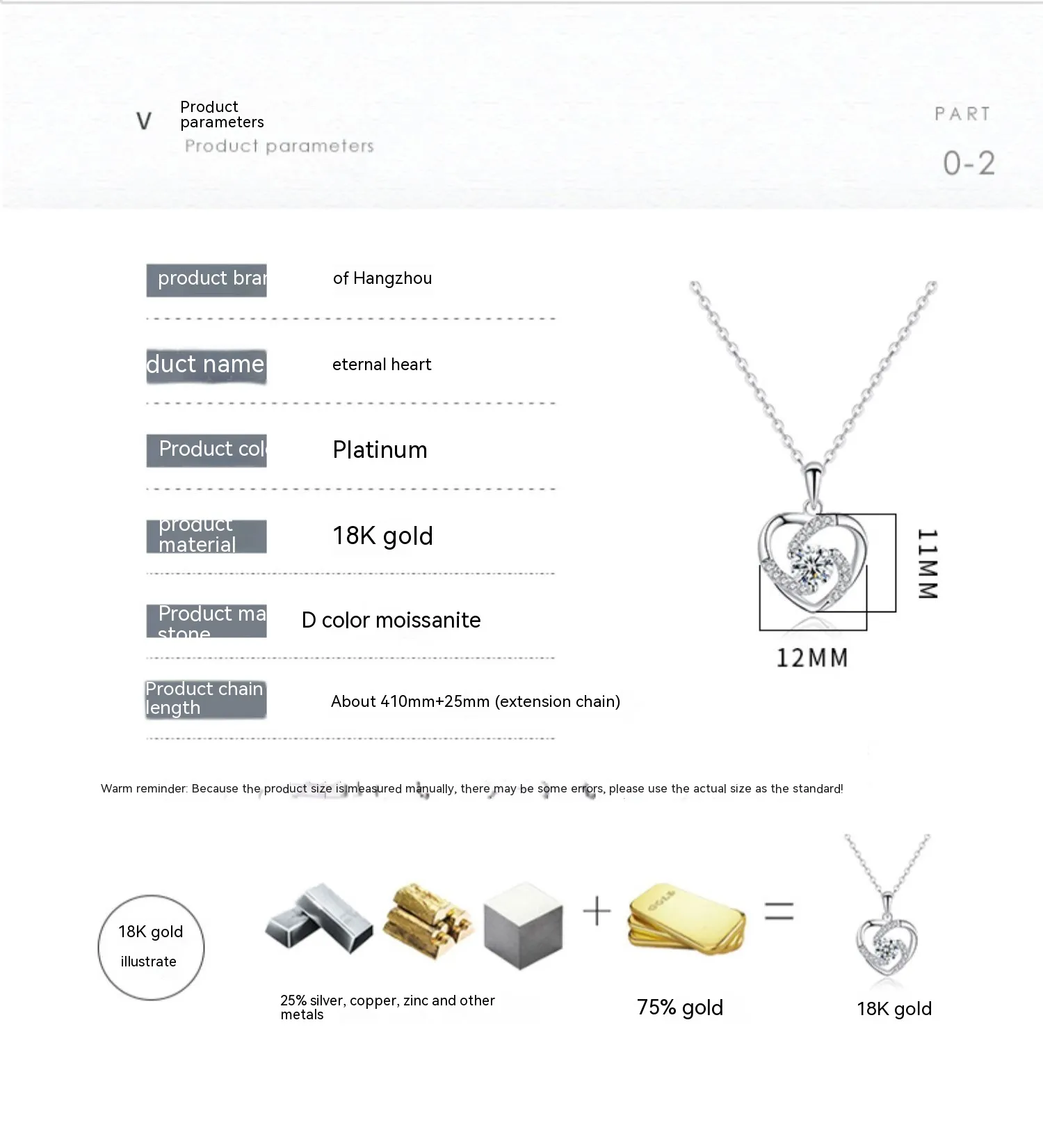A: 18K white gold pendant (40 points D-color Moissanite)+18K gold O-shaped chain (about 1.2g)+certificate