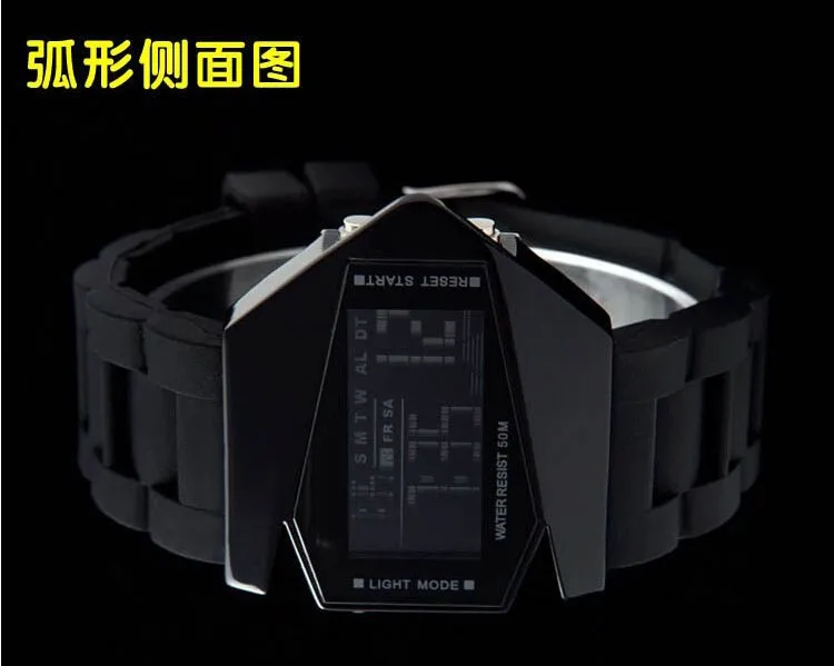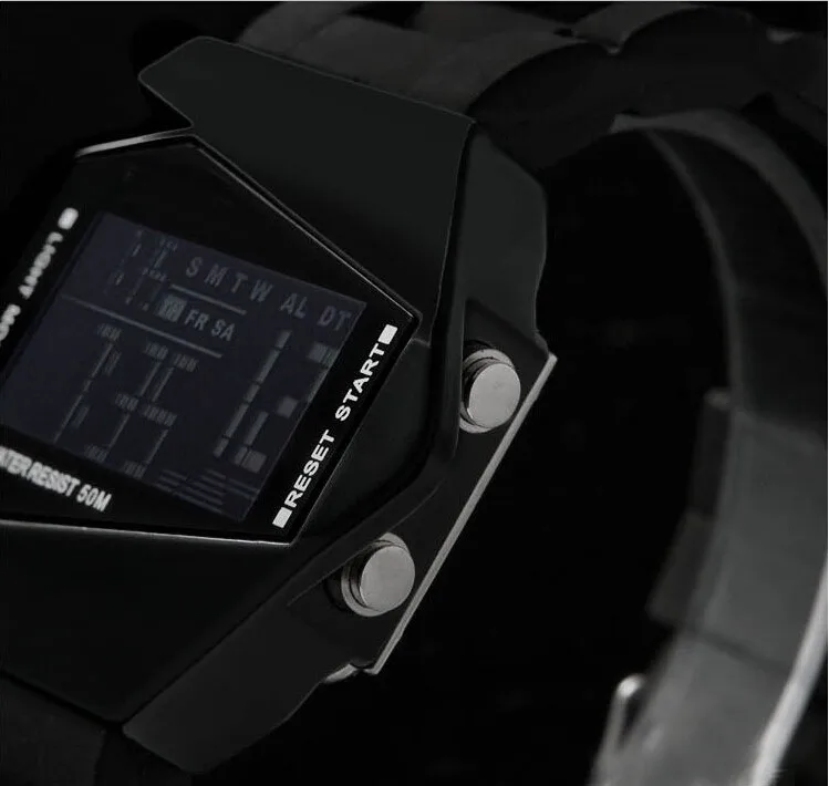 The Luxus Herren LED Watch is the ultimate blend of fashion, durability, and high-tech features. Inspired by the rugged demands of military precision, this digital sport watch is perfect for men and women who value both style and functionality. Featuring a unique aircraft bomber flashlight, LED display, and robust construction, this watch is designed to withstand the rigors of daily life while making a bold style statement.
