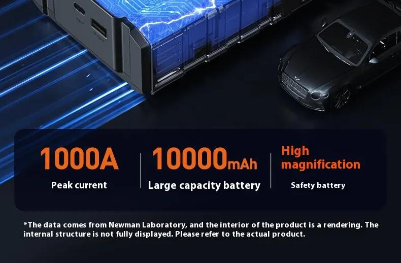 High-Power Jump Starter: Provides sufficient power to jump-start 12V vehicles, including cars, motorcycles, SUVs, and light