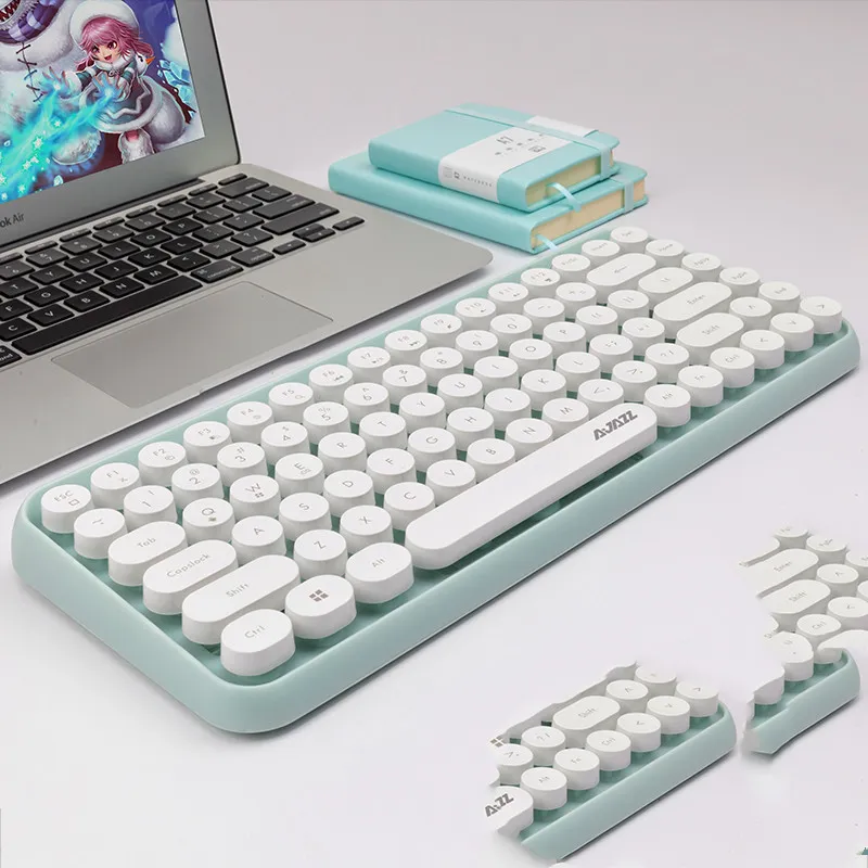 Inspired by the soft hues of macarons, this pastel-colored keyboard adds a touch of elegance to your desk while providing responsive and comfortable typing. The round, retro-style keycaps offer a smooth and quiet typing experience, reducing strain on your fingers during extended use.