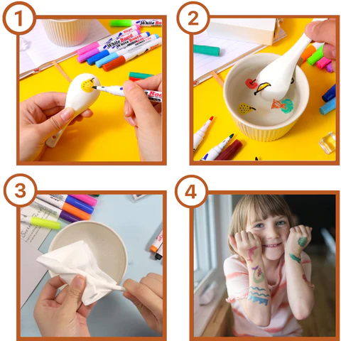 Our Magical Floating Drawings Bundle is an excellent choice for children who love to express themselves creatively. The bundle offers several advantages, including the ability to draw your own tattoos. This feature allows children to create their own temporary tattoos using the bundle's magic pens, giving them the freedom to let their imagination run wild and express themselves in a unique way. Additionally, it is mess-free, so parents and caregivers don't have to worry about cleaning up after the children have finished creating their art. This feature makes it a convenient option for busy parents and caregivers.