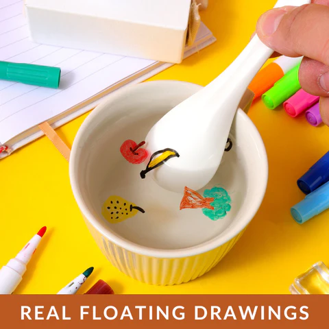 Our Magical Floating Drawings Bundle includes 12 colored pencils in different colors, a matching spoon if you like and high quality packaging. It's a great gift for kids who want to learn through play. Secure your next gift for your child now.