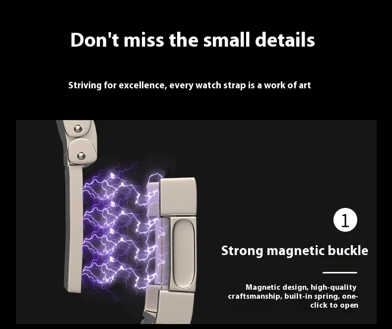 Featuring a strong magnetic buckle, this strap provides quick, secure, and adjustable fastening. Easily adjust the length to fit any wrist size, ensuring comfort and stability while eliminating the hassle of traditional clasps.