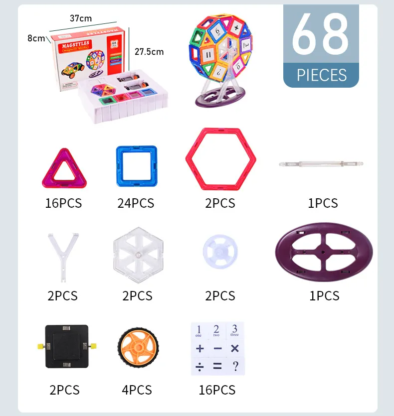 Magnetic Building Blocks Classic Toys offer an exciting, engaging, and educational experience that sparks creativity and fosters learning. Designed for children of all ages, these magnetic blocks make building fun, safe, and easy. With their powerful magnets and a variety of shapes, sizes, and colors, these blocks are the perfect tool to unlock your child's imagination while teaching them valuable skills in STEM (Science, Technology, Engineering, and Mathematics). Whether your child is creating geometric shapes, complex structures, or abstract designs, these toys provide endless possibilities for play, learning, and growth.