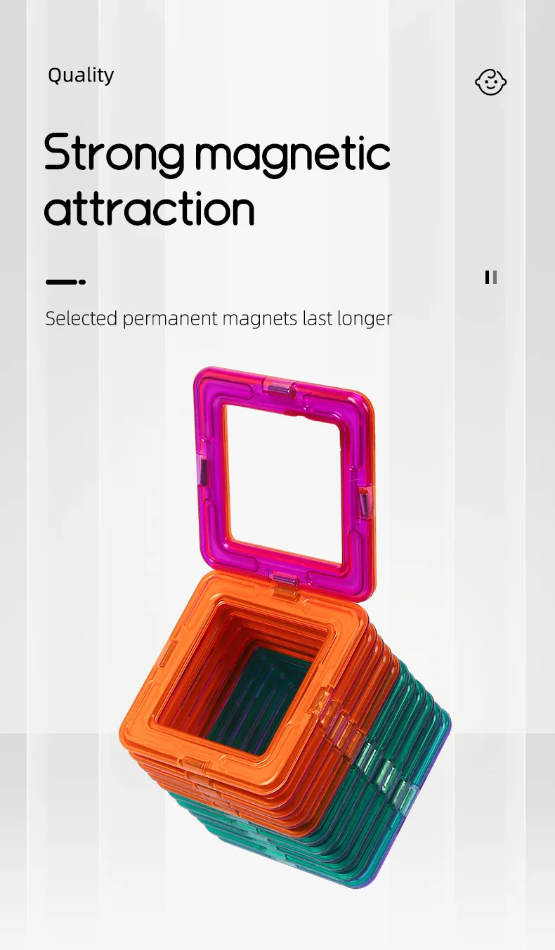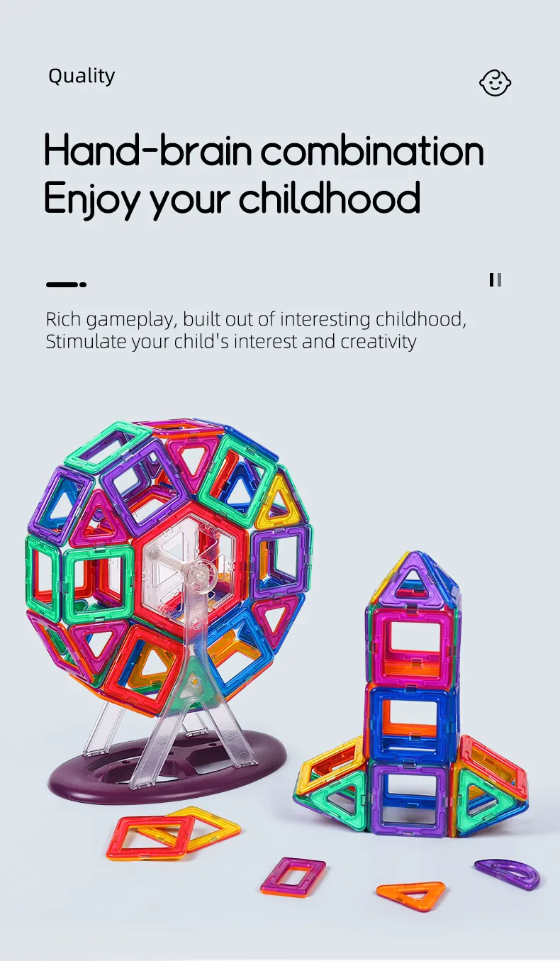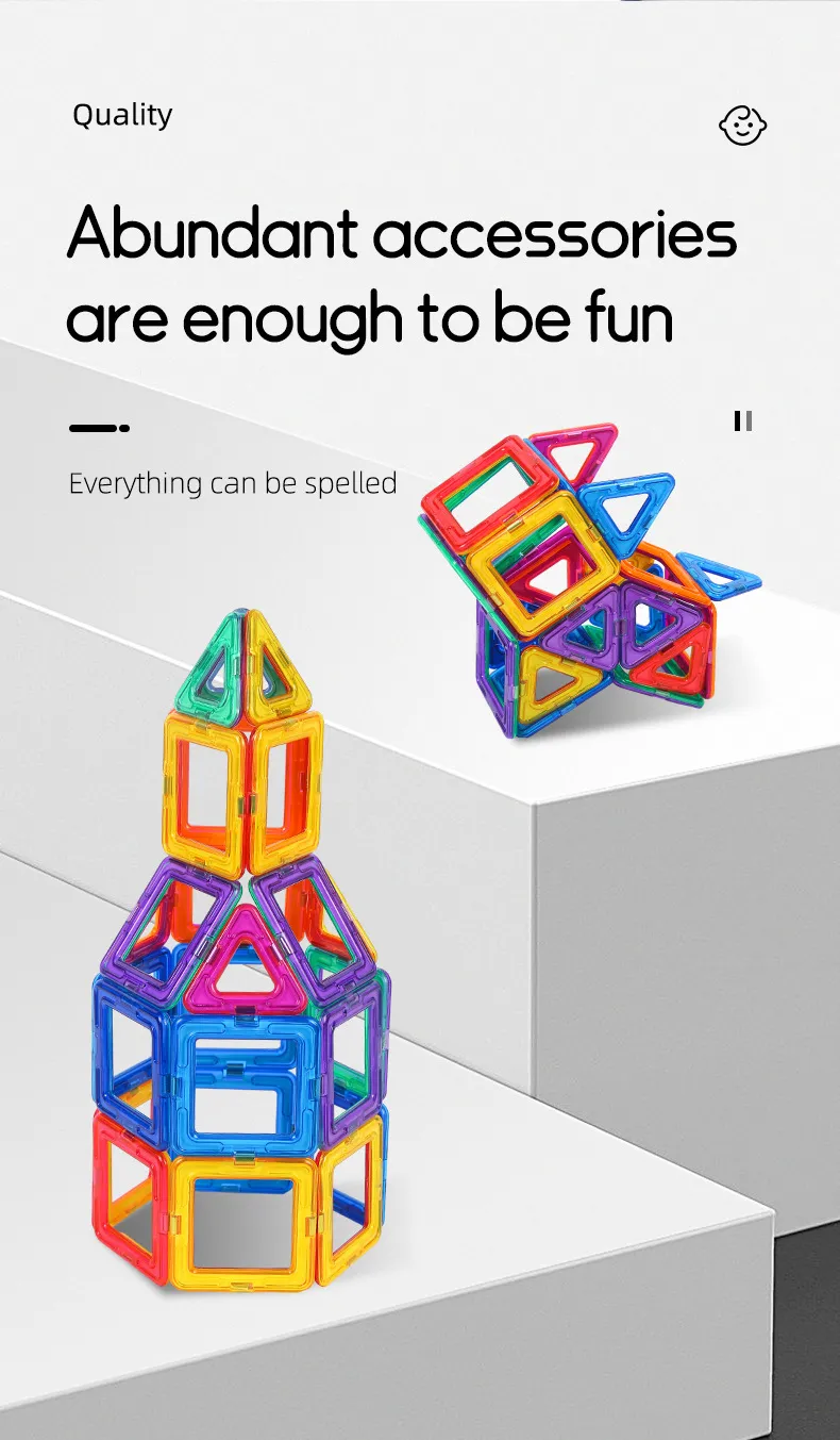 With a variety of geometric shapes and vibrant colors, these magnetic building blocks encourage children to think creatively and explore different designs. From simple shapes like squares and triangles to more complex structures, these blocks inspire imaginative play. Children can create anything they can dream up, whether it’s a car, house, spaceship, or abstract art.