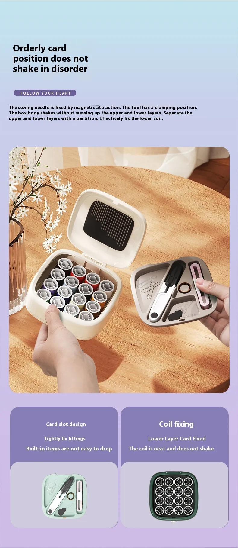 Color: cream white-magnetic thread box (16 color sewing thread tool), light luxury green-magnetic thread box (16 color sewing thread tool),
