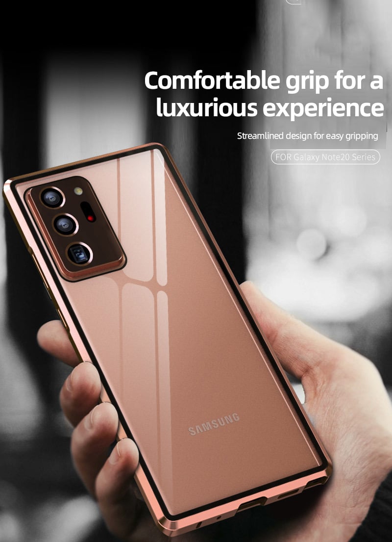 clear tempered glass back retains the original aesthetic of Samsung's design. The double-sided magnetic case provides maximum overall