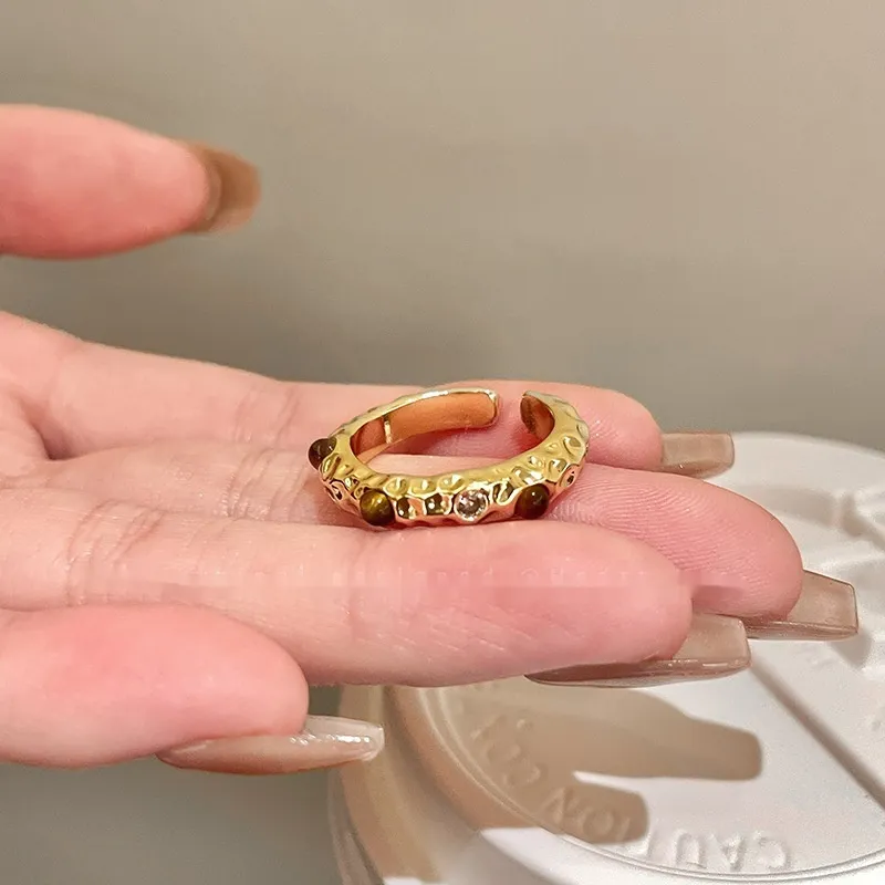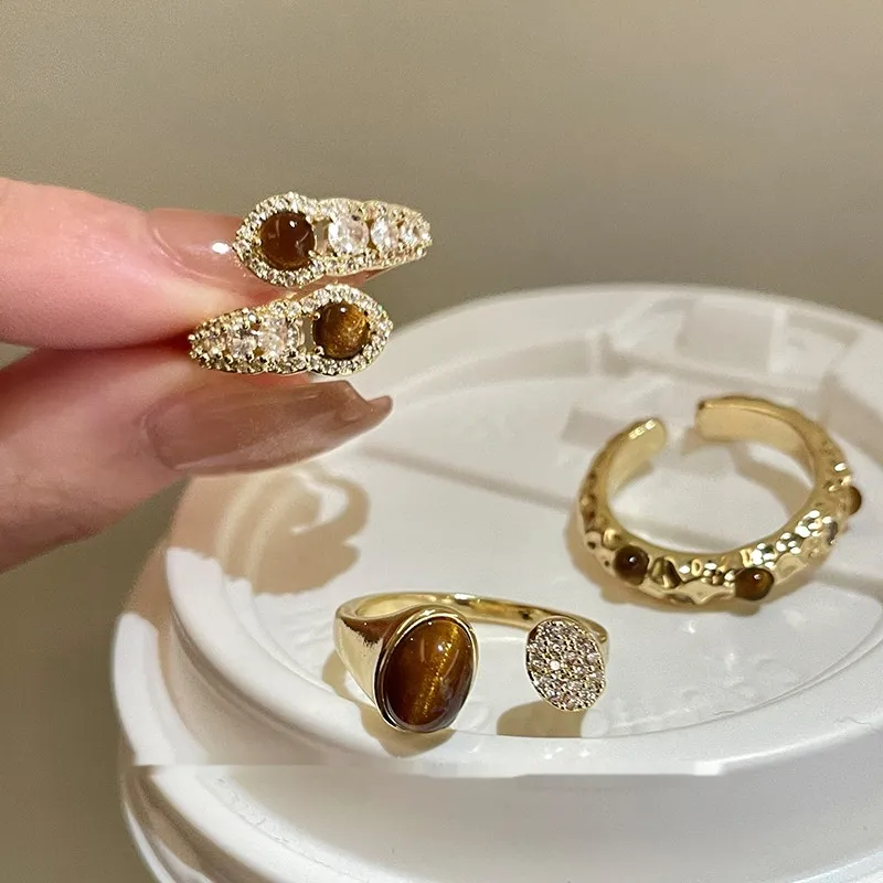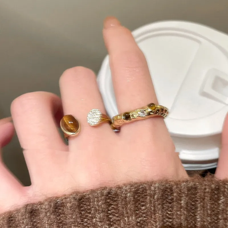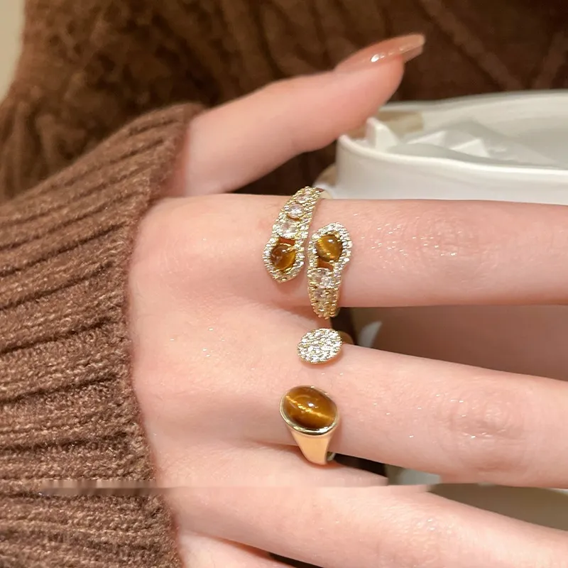 Color: pleated Tigereye ring, double stitching Tigereye open ring, cross snake shape Tigereye ring
