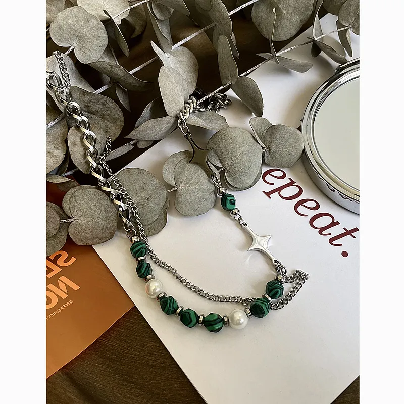 To maintain the beauty of the necklace, avoid exposure to harsh chemicals or moisture. Clean the natural stones with a soft cloth and store the necklace in a dry place when not in use.