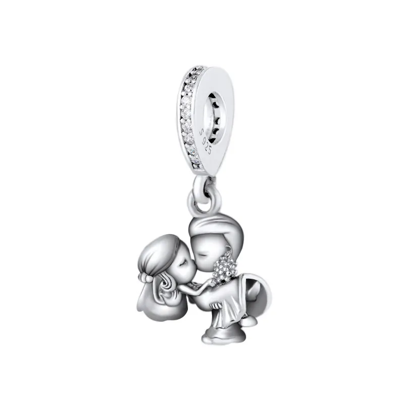 The pendant features a delightful depiction of a bride and groom, with intricate detailing that captures the joyous and loving nature of a wedding. This design brings together beauty and symbolism in one elegant piece.