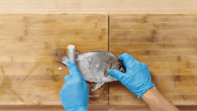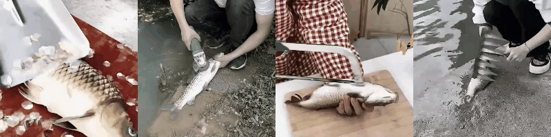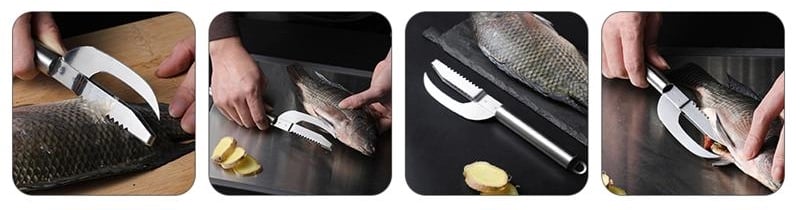 Scraping scales, cutting meat, gutting,