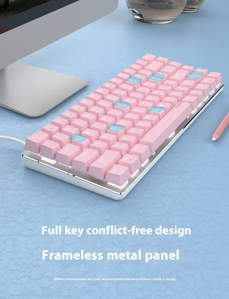 Level up your gaming and typing with the Mechanical Keyboard 82 Keys White Backlight Style, designed for both gaming enthusiasts and productivity professionals. This compact 82-key layout provides an efficient typing experience while ensuring that every keystroke is registered with speed and precision. The white backlighting adds a modern touch, enhancing visibility and aesthetics during late-night gaming or work sessions.