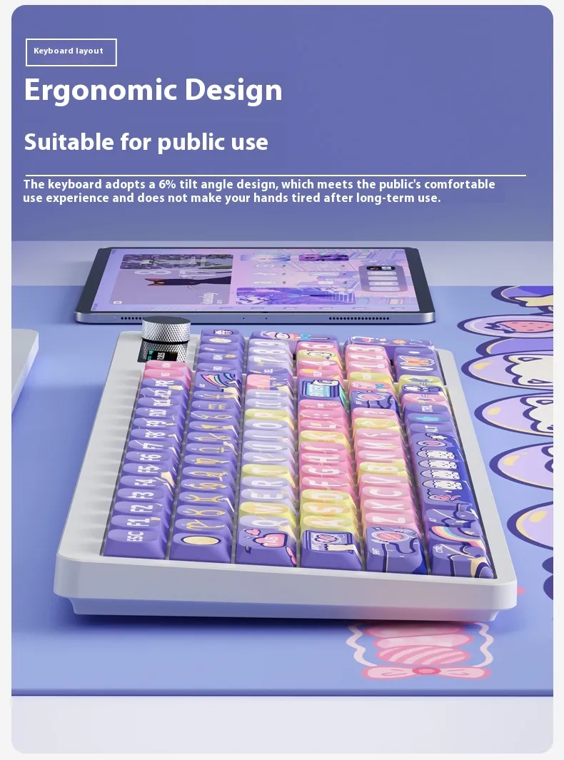 The high-quality PBT keycaps feature five-sided dye sublimation printing, ensuring long-lasting, fade-resistant legends that maintain their vibrant look over time.