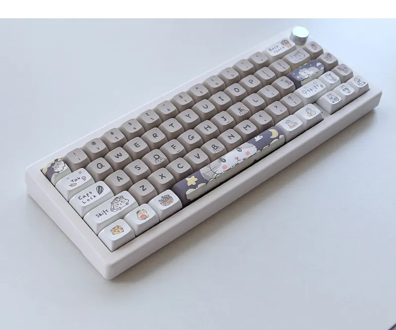 Bring a delightful, fun touch to your mechanical keyboard with the Custard Cute Keycaps. Designed to fit a variety of layouts, including 68, 75, 98, and 100 columns, these keycaps are perfect for anyone looking to personalize their setup. With their adorable custard design and high-quality material, these keycaps are not only visually appealing but also built to withstand long-term use.