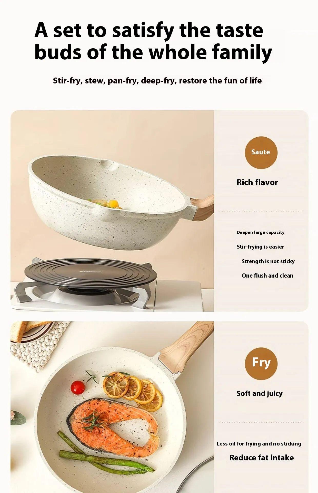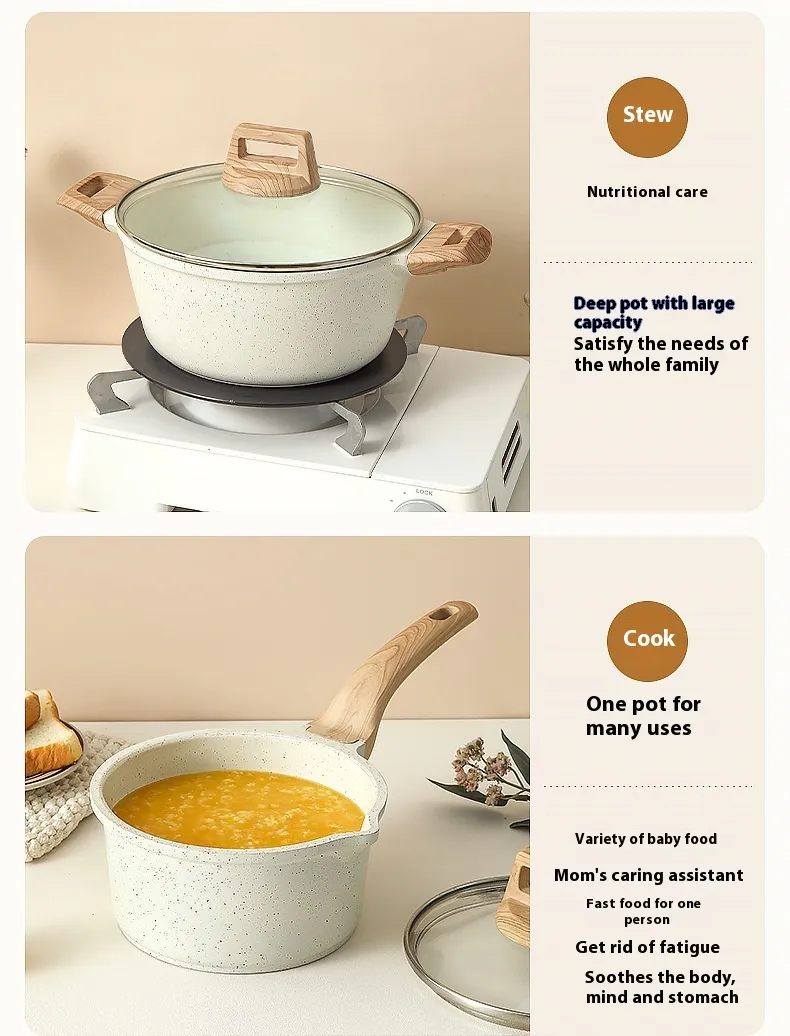 The medical stone coating prevents food from sticking, allowing you to cook with less oil for healthier meals. Cleanup is a breeze, making this set perfect for busy kitchens.