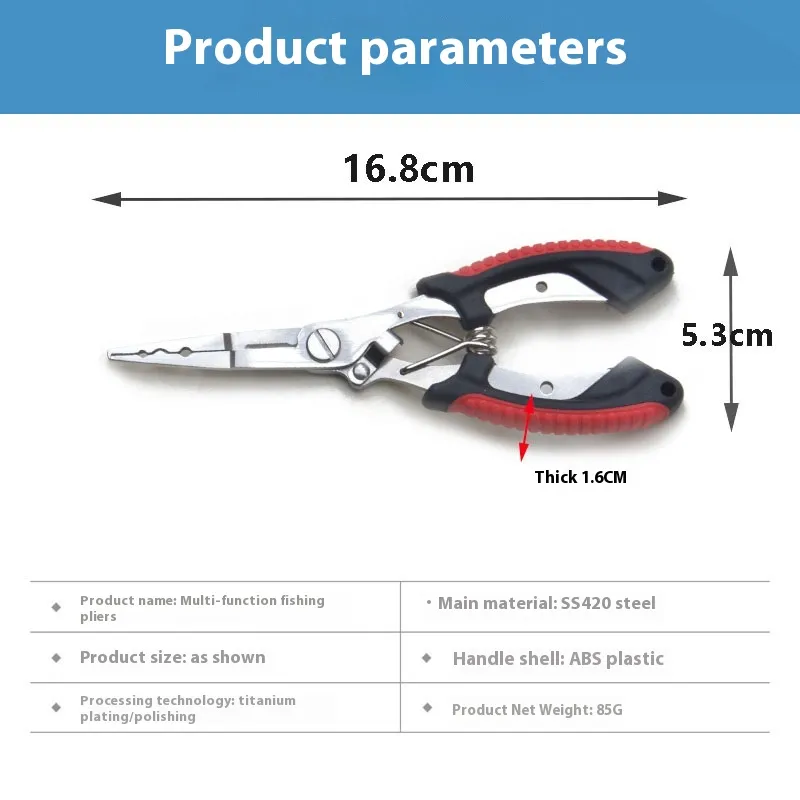 The Medium Straight Mouth Fishing Pliers are designed to serve multiple functions in one tool. Key features include: