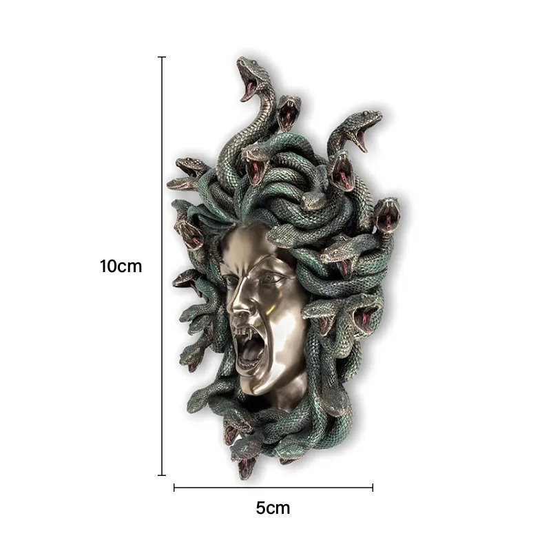 Medusa's story is rich with symbolic meaning, representing themes of beauty, fear, transformation, and vengeance. In Greek mythology, Medusa was once a beautiful woman who was transformed into a monster by the goddess Athena. Her gaze was said to turn anyone who looked at her into stone, a tragic twist of fate that transformed her from a figure of beauty to one of dread. The Medusa Wall Statue captures both the allure and terror of this mythical figure, making it a powerful piece that tells a story of transformation and inner strength.