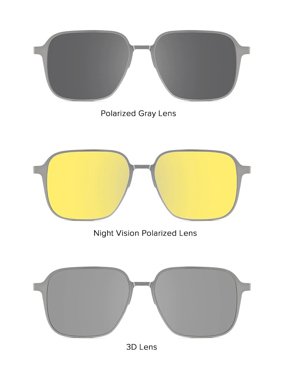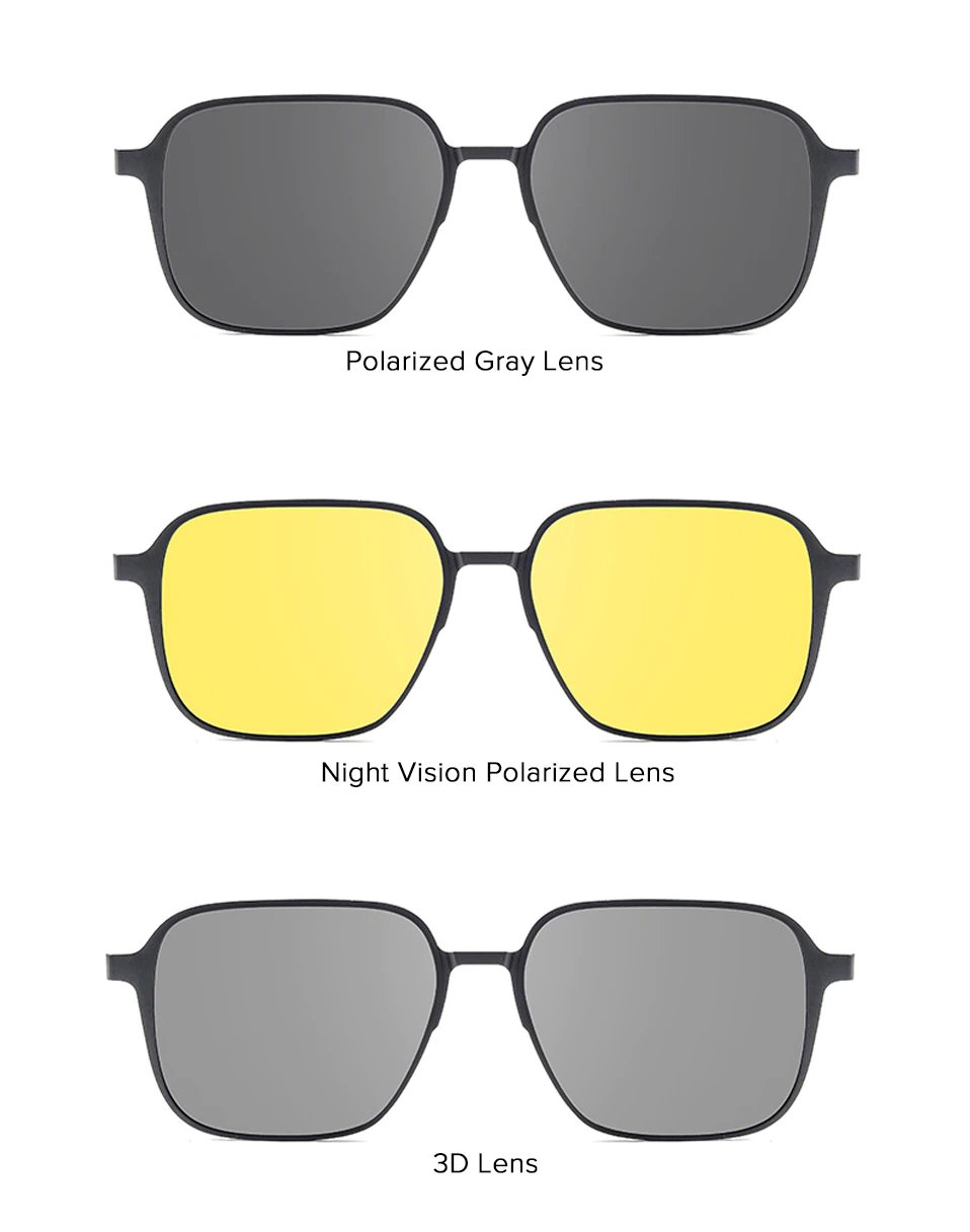 This eyewear comes with a magnetic adsorption clip lens that can be easily attached or detached from the frame. The polarizers lens helps to reduce glare and improve visual clarity, making it ideal for outdoor activities like driving, hiking, and fishing. Additionally, the night vision lens is designed to enhance visibility in low-light conditions, making it easier to see when driving at night or in other low-light situations.