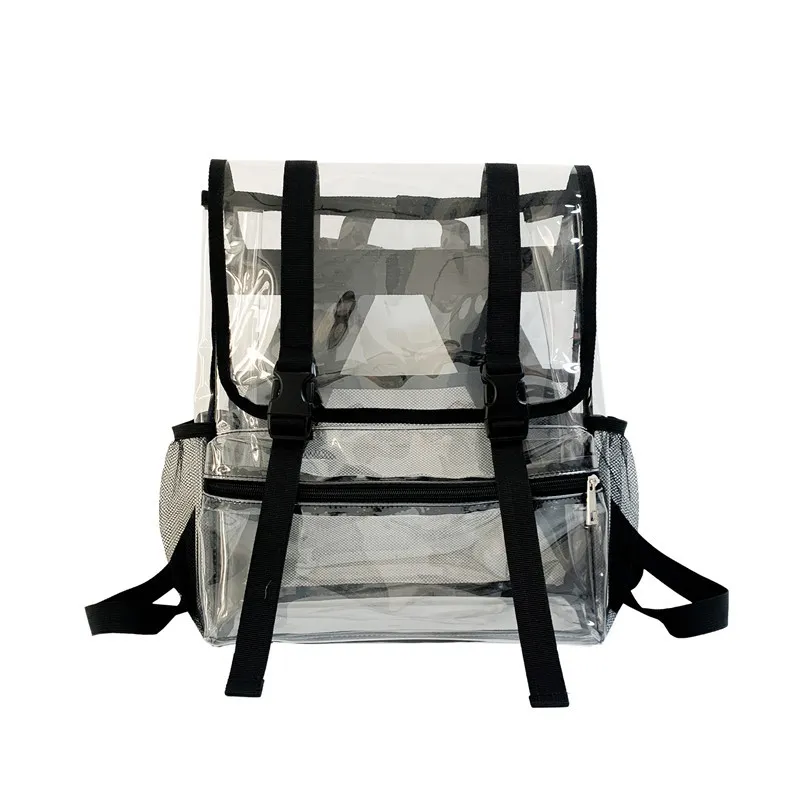 Its robust zip closure and reinforced edges ensure long‑lasting use while protecting contents from dust and moisture. The fashion‑forward transparent exterior is complemented by bold trims, secure buckles, and ergonomic carry options — making it equally at home in airports, gym lobbies, concerts, sports venues, and weekend getaways. Lightweight and easy to carry, this bag supports both functional travel needs and stylish lifestyle demands for men and women alike.