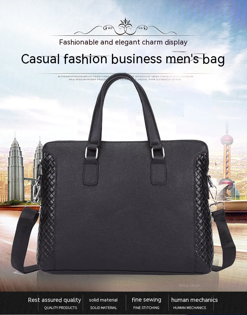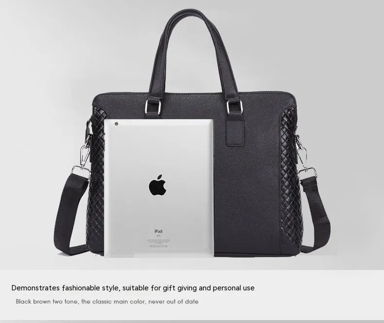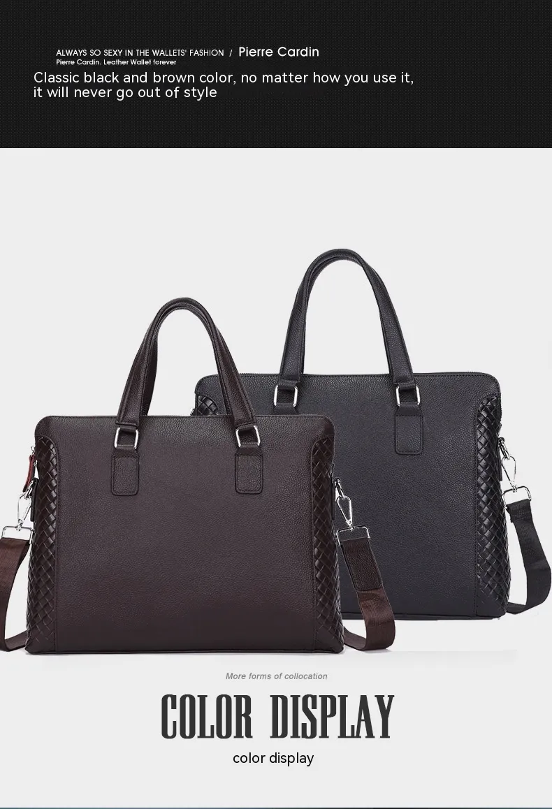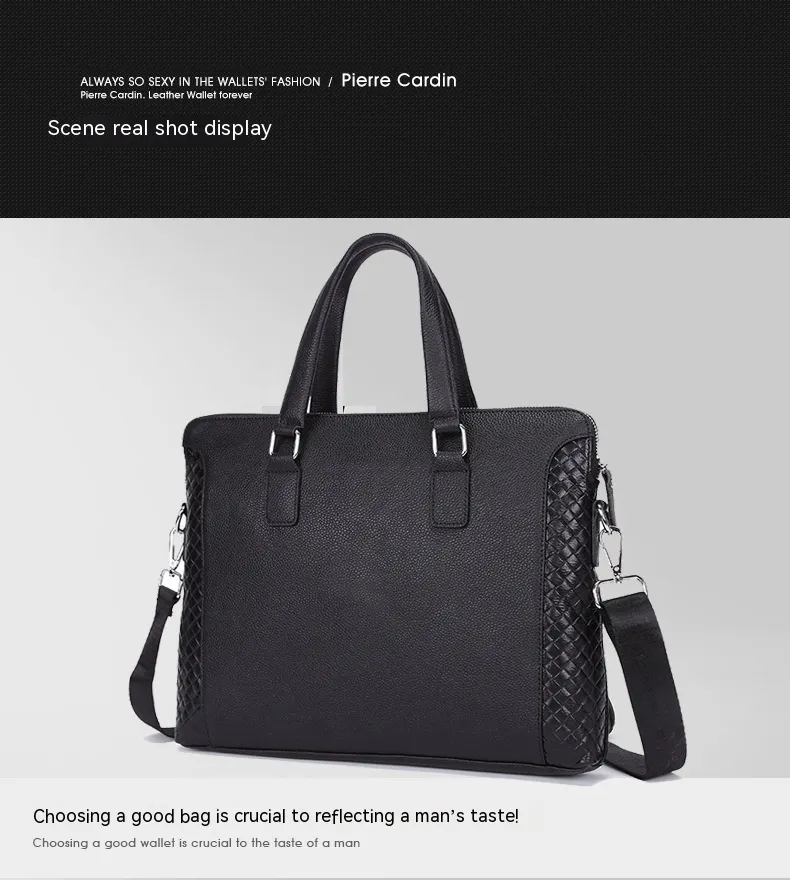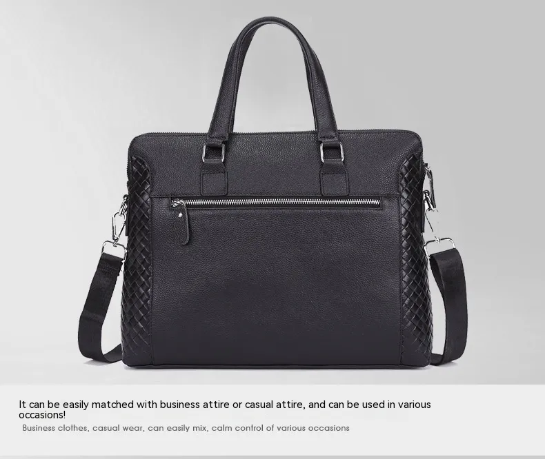 Men's Briefcase Genuine Leather 14-inch Laptop Bag Horizontal Cowhide Business Office Bag