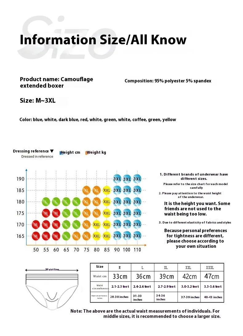 - Camouflage Design: A bold, stylish pattern that adds a rugged touch to your underwear collection.