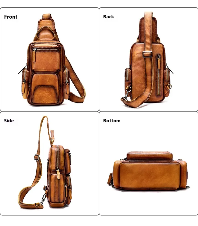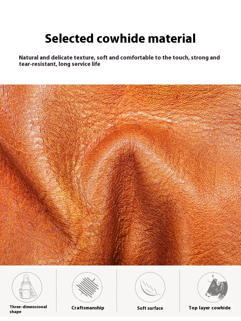 practicality. Crafted from premium first-layer cowhide leather, this chest bag offers a luxurious feel and exceptional durability. Its