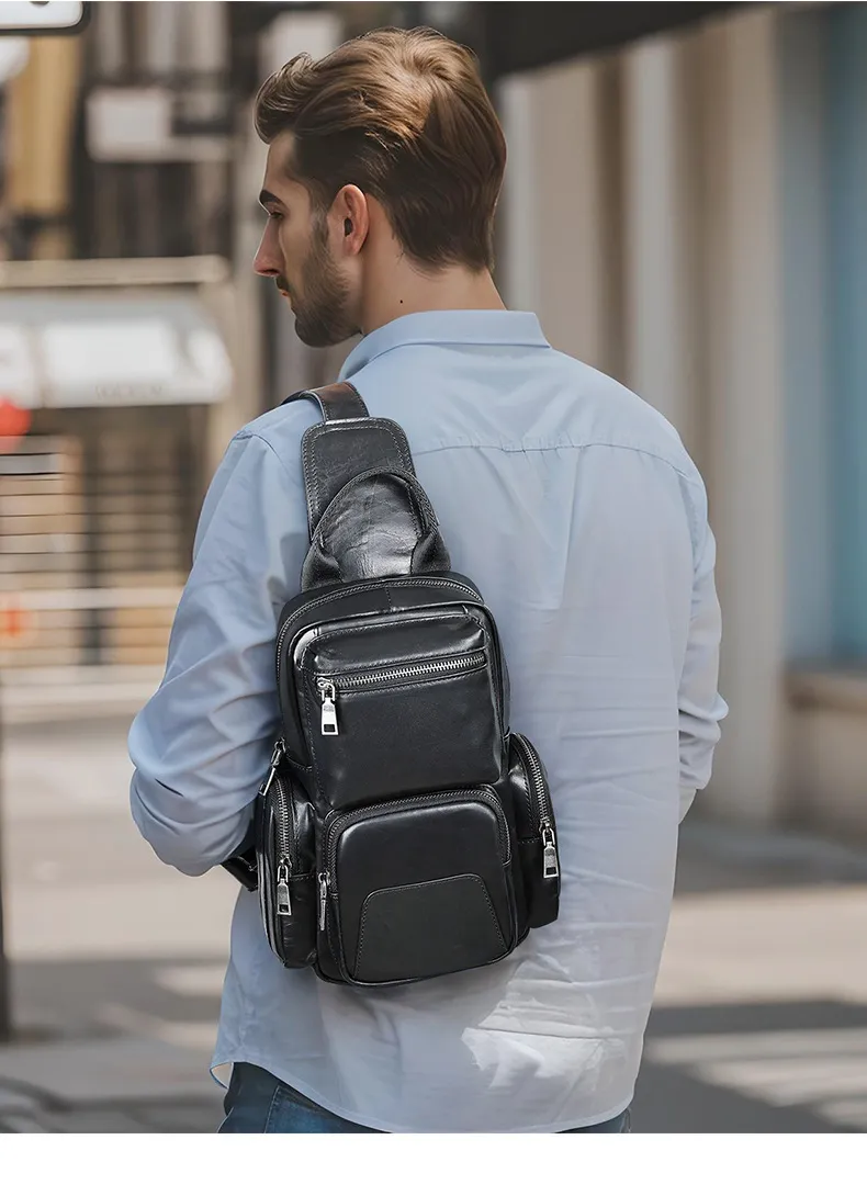 wear. Elevate your accessory game with the Men's Casual First Layer Cowhide Small Chest Bag, where modern design meets timeless quality