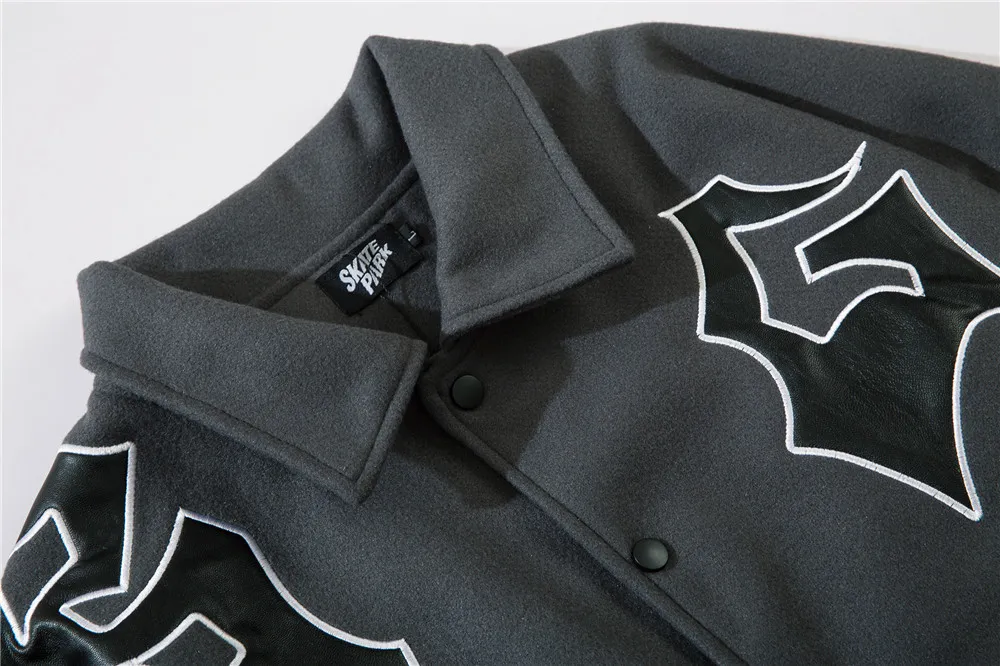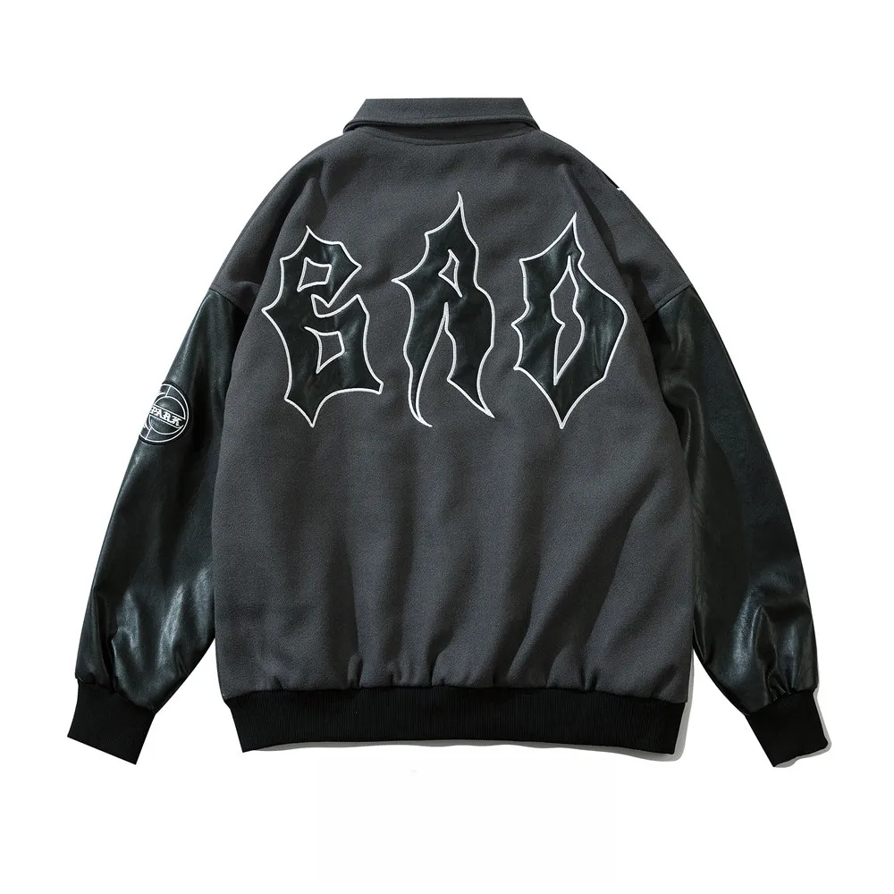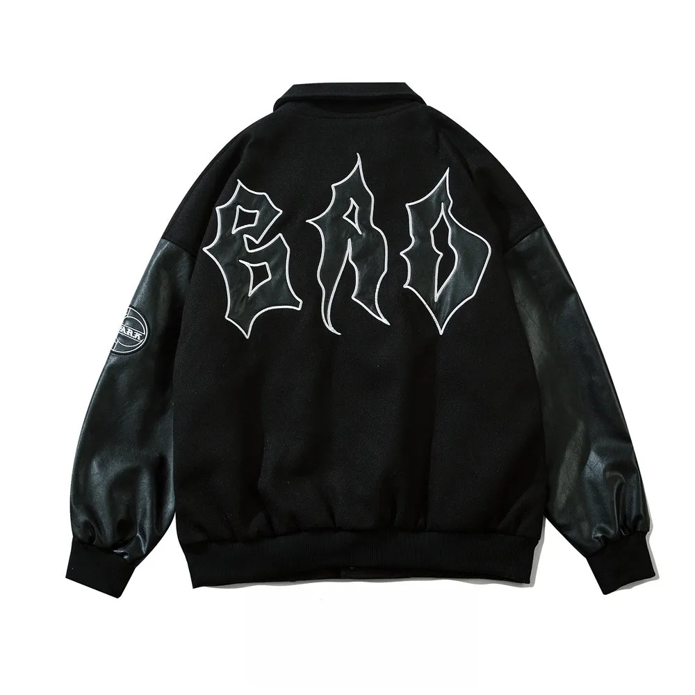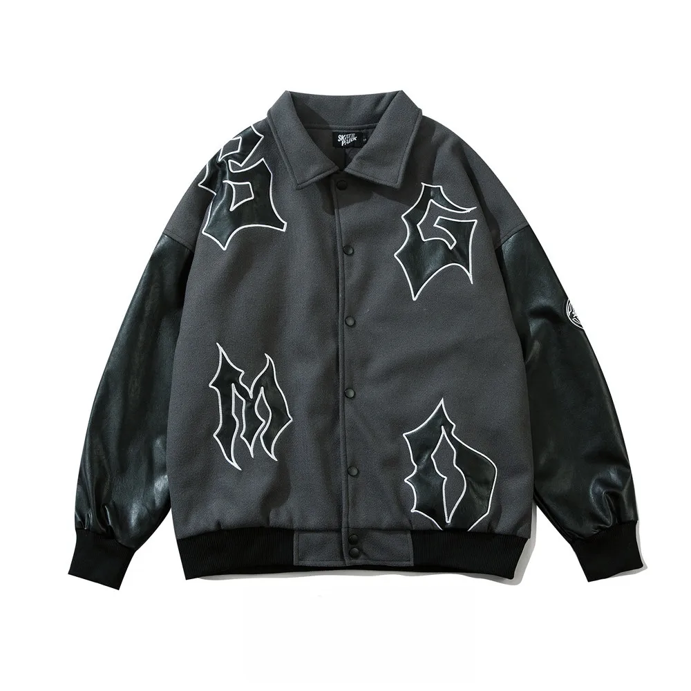 Men's Embroidered Letters PU Leather Sleeve Stitching Baseball Uniform