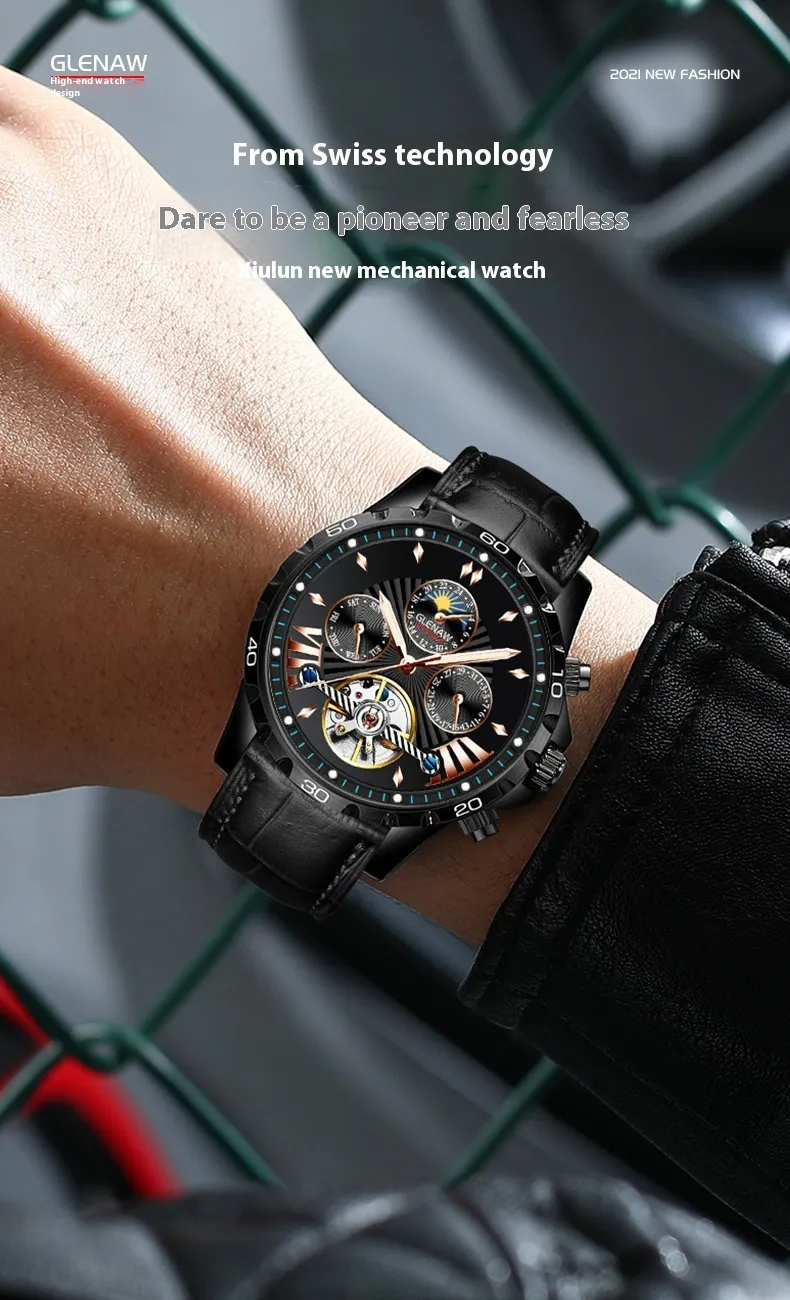 Elevate your timekeeping with the Men's Fashion Hollowed-out Automatic Mechanical Watch, a stunning blend of classic craftsmanship and contemporary design. Whether you're attending a business meeting, a casual outing, or a formal event, this mechanical watch is the ultimate accessory to enhance your style. Its hollowed-out dial not only reveals the intricate movement of the watch but also adds a unique aesthetic, making it a perfect blend of functionality and fashion.