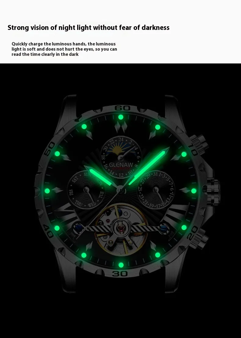 While the hollowed-out dial and transparent elements provide a modern and contemporary twist, the overall design of the watch remains timeless. It can be worn with both formal and casual attire, making it a versatile accessory that transitions effortlessly from day to night.
