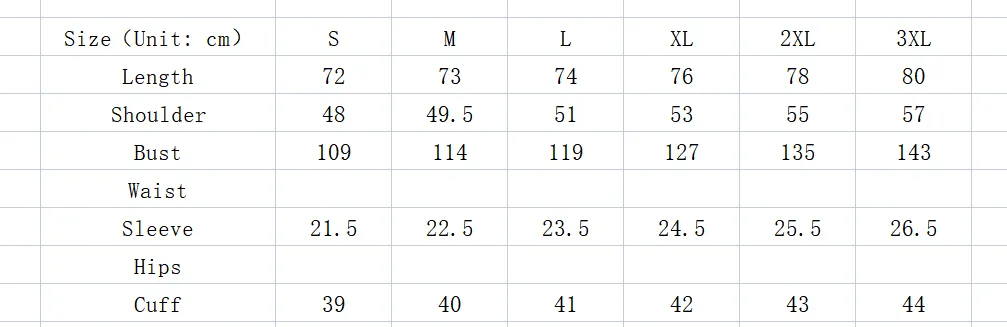 between two sizes. Please allow 2-3cm differences due to manual measurement.