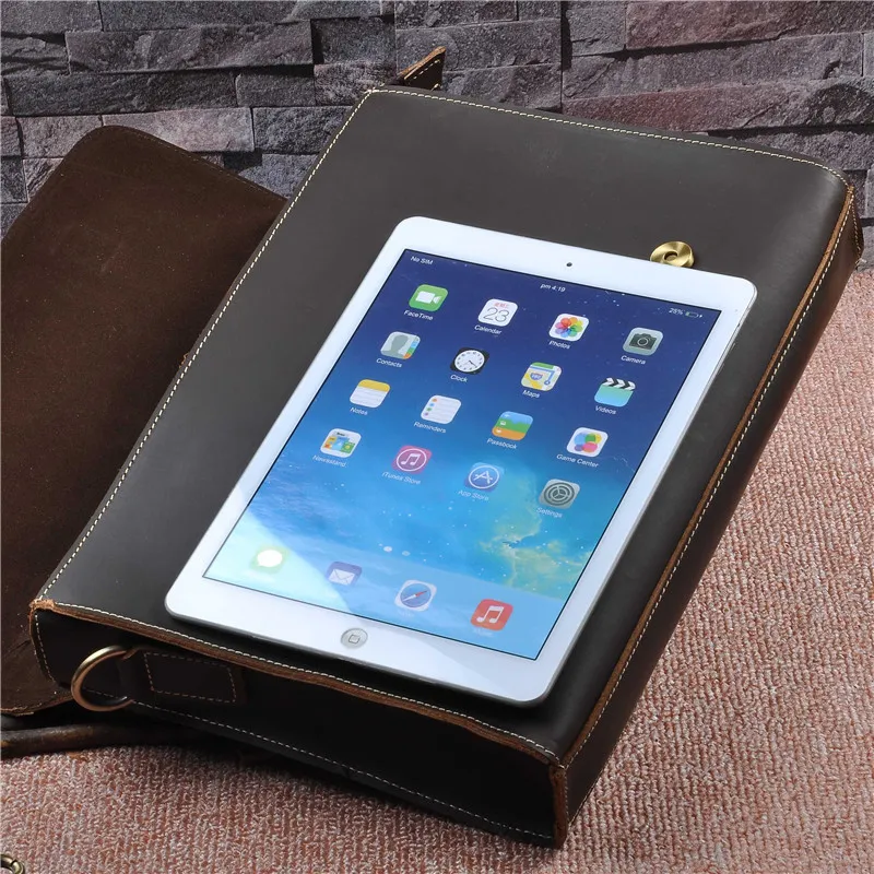 Mens Genuine Leather Cowhide Crazy Horse Leather Handbag