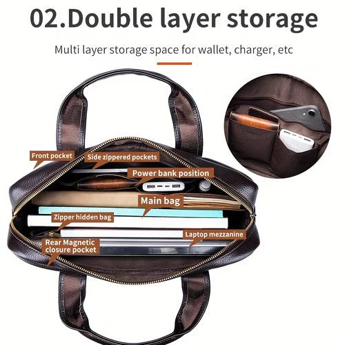 The Men’s Genuine Leather Laptop Briefcase combines the elegance of genuine leather with the practicality of a well-organized and functional design. Unlike many traditional business bags, this briefcase is lightweight yet durable, providing enough space to carry all your work essentials, including a laptop, tablet, and documents. The versatile carrying options—handheld or shoulder strap—make it easy to customize how you carry your briefcase, providing convenience no matter where the day takes you.