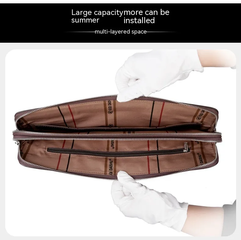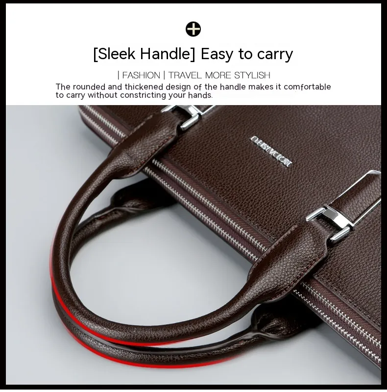 Men's Handbag Double Pull Large Capacity Business Computer Bag Authentic Leather Tactile Feel