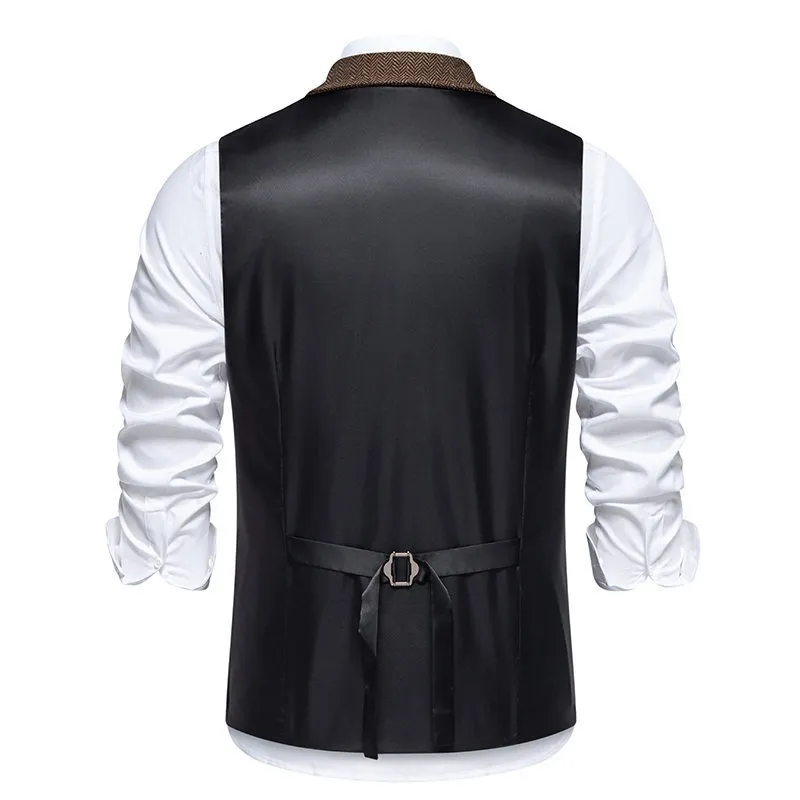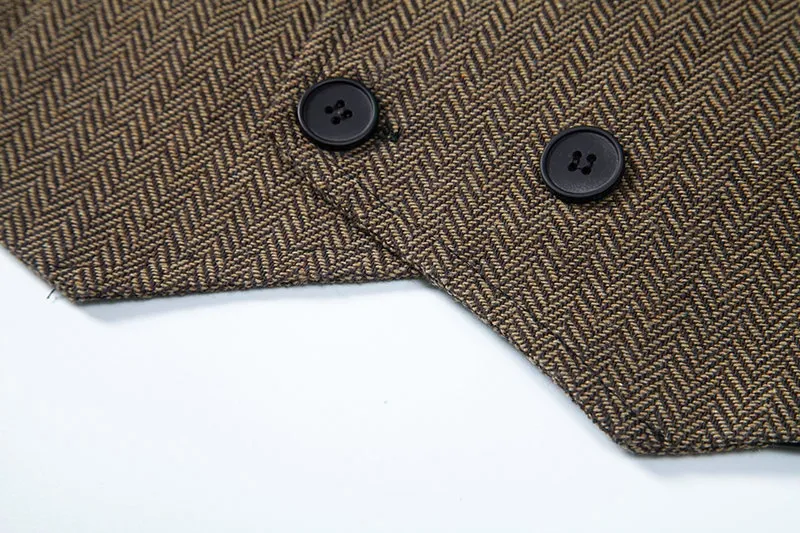 In conclusion, the Men's Herringbone Tweed Suit Vest Retro Lapels Double Breasted Vest is a must-have for those who appreciate timeless style, comfort, and sophistication. The premium herringbone tweed fabric, combined with the retro lapels and double-breasted design, ensures that this vest will stand out at any event. Perfect for both formal and semi-formal occasions, this vest is a versatile addition to any wardrobe, offering both classic charm and modern elegance. Whether you're dressing for a wedding, business event, or a night on the town, this vest is sure to elevate your style and leave a lasting impression.