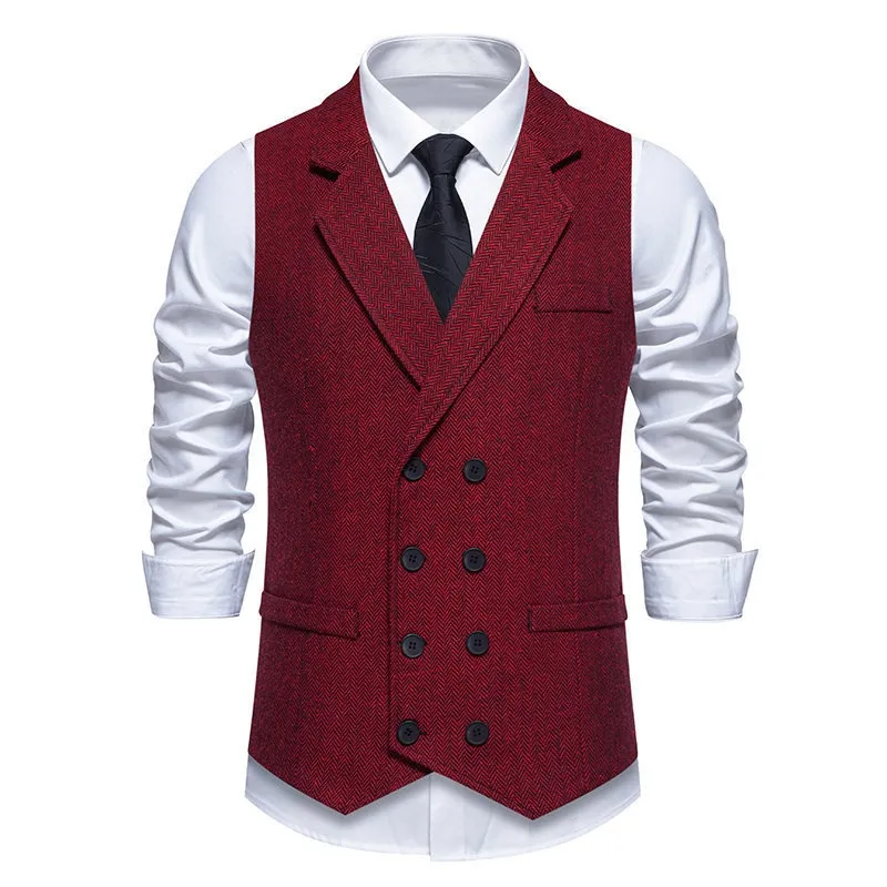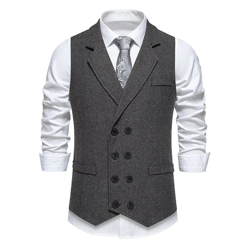 Men's Herringbone Tweed Suit Vest Retro Lapels Double Breasted Vest
